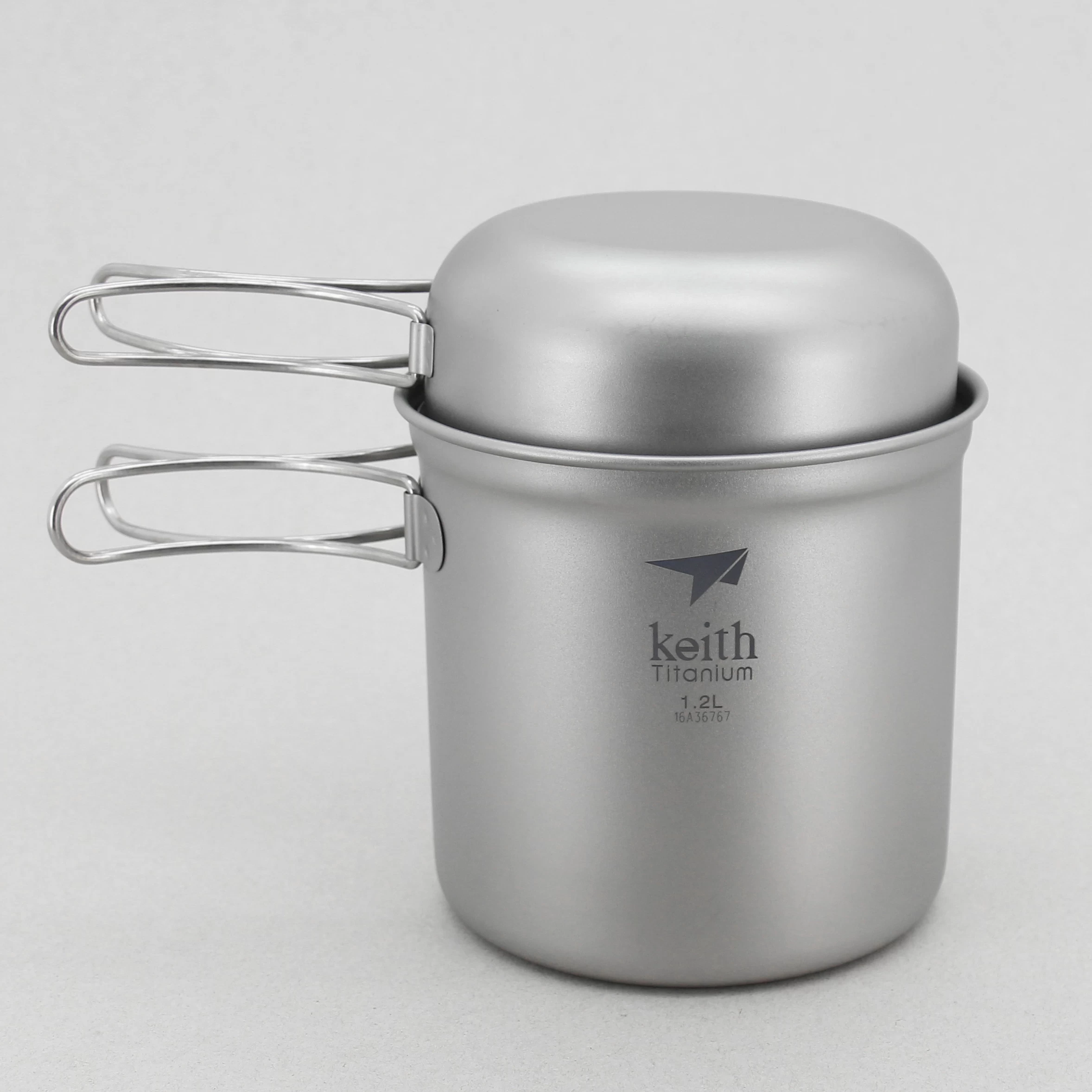 The 2-Piece Titanium pot and Bowl Set from Keith is a lightweight kitchen camp cooking and eating set.