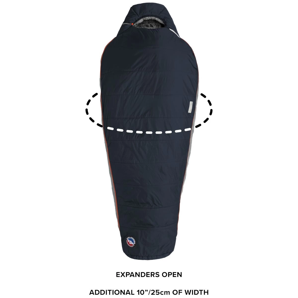 • Expanded comfort with two zippered panels, running from shoulder to footbox, adding five extra inches of room to each side – 10″ total when completely expanded