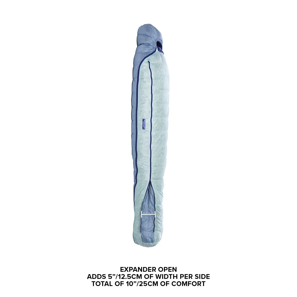 • Ultralight down mummy bags that feature expandable panels for customizable fit – patent pending