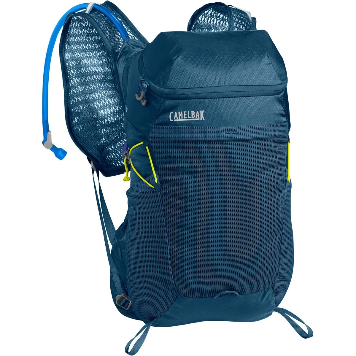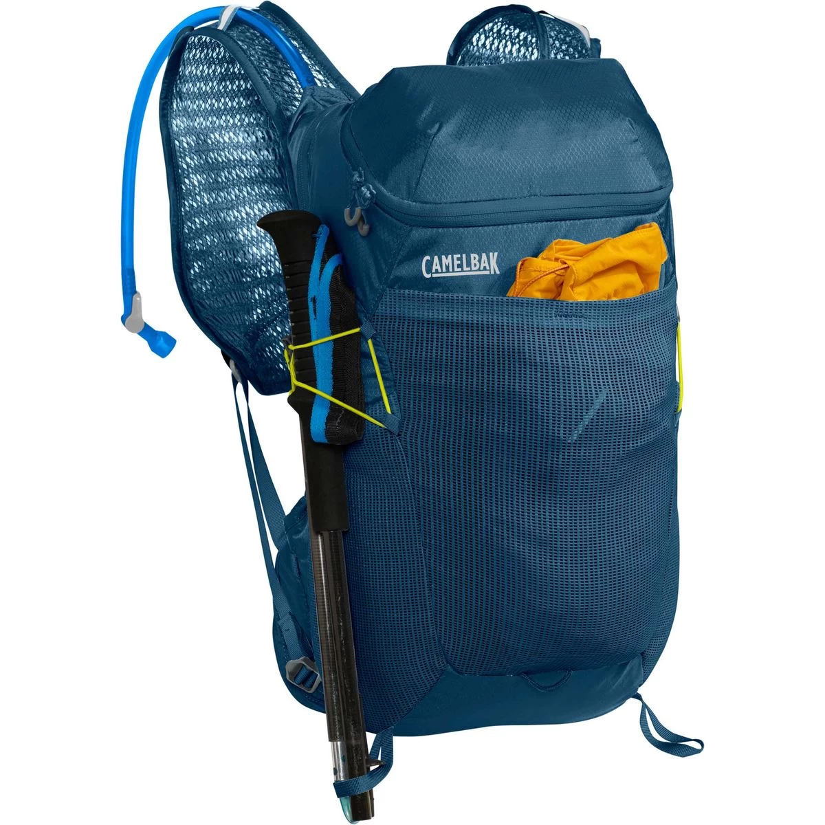 Changes in terrain demand flexibility. The CamelBak Octane 18 sends you off with all the necessary bells and whistles – actual safety whistle included. Stay hydrated with a 2L Cruxâ„¢ reservoir with Quicklinkâ„¢. Enough storage for snacks and essentials, and a convenient stretch overflow pocket for your top layers. Top load access for quick and easy stow on-the-go. Trekking pole attachment, dual adjust sternum straps for stability, and strategic 3D mesh venting for optimal air-flow while you move.