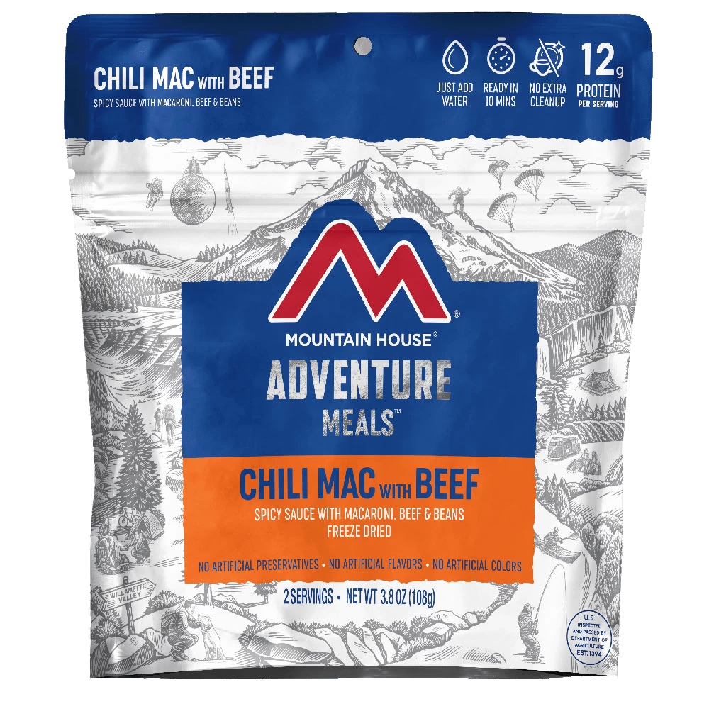 Whether you’re trekking the Sierras or camping with the Boy Scouts right in your backyard, Mountain House Chili Mac is an insanely delicious meal that’s guaranteed to fill you right up at the end of a long day. Made with pillowy macaroni noodles, savory precooked beef and yummy kidney beans in a tasty chili sauce, freeze dried Chili Mac is a customer favorite from coast to coast. Just add hot water and you’ll have a comforting hot meal in minutes.
