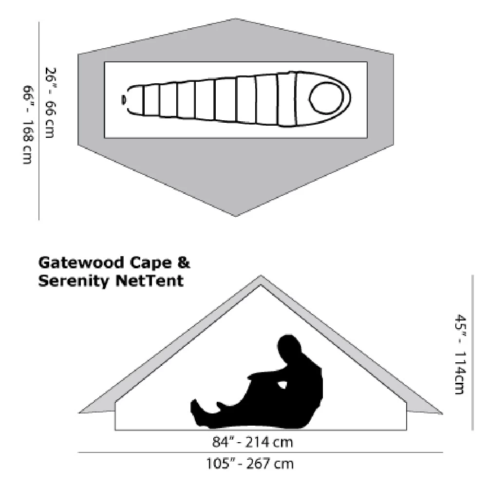 For added bug protection the Gatewood Cape mates with the Serenity NetTent (sold separately). Together they keep both the rain and bugs at bay, providing you with secure and comfortable space.
