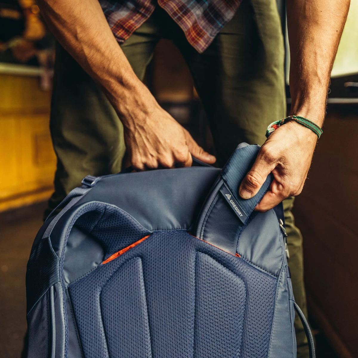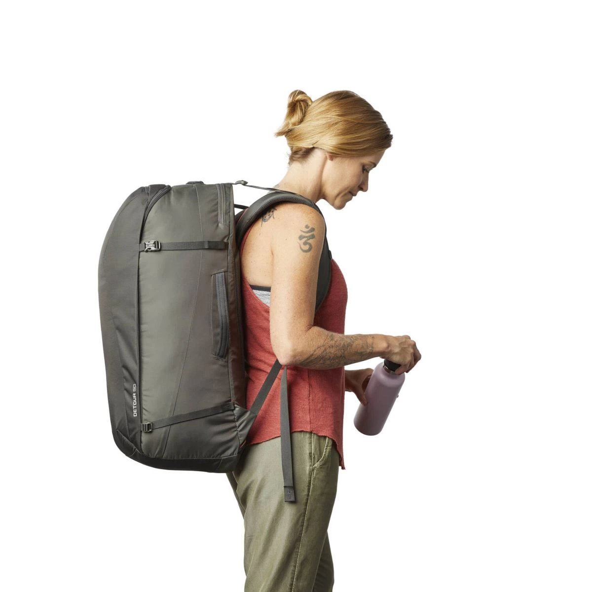 The Gregory Detour 60 has room to spare for longer adventures. A padded backpanel and breathable shoulder harness conveniently tuck away when you pass it off at the baggage counter. Lockable main and front quick-access pockets provide security, while the padded front panel offers protection for what’s inside.