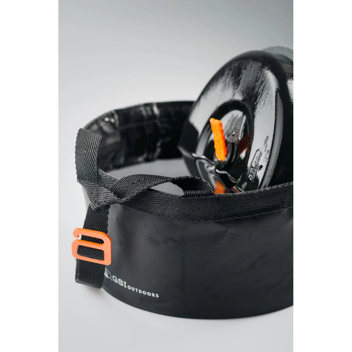 Rugged, welded sink acts as a wash basin and holds set during storage or transport.