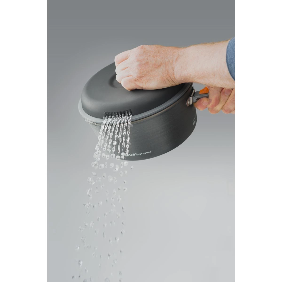 Crushproof, heat-resistant strainer lid and silicone ring will not deform in packs and works with either the pot or the frypan.