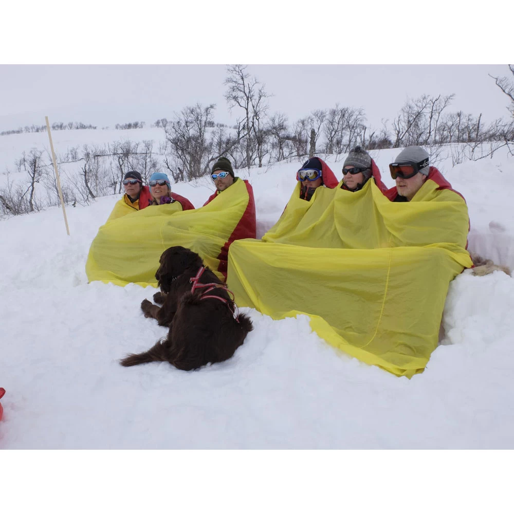 Emergency Use: As an emergency bivy bag, the Windsack 3 will accommodate up to three occupants plus sleeping pads and sleeping bags. An integrated safety line prevents the Windsack from blowing away in strong winds while you’re getting into or out of it, and four corner loops let you anchor it in exposed terrain. The zipper at its head has four sliders for making either head holes or venting ports, and a drawcord in the bottom lets you cinch the Windsack around the occupant’s feet. Its waterproof back and breathable front make it a good choice for use in snow caves, and it can also be staked out, red side up, as a rescue panel to signal for help from the air, or it can be rigged as an improvised tarp.