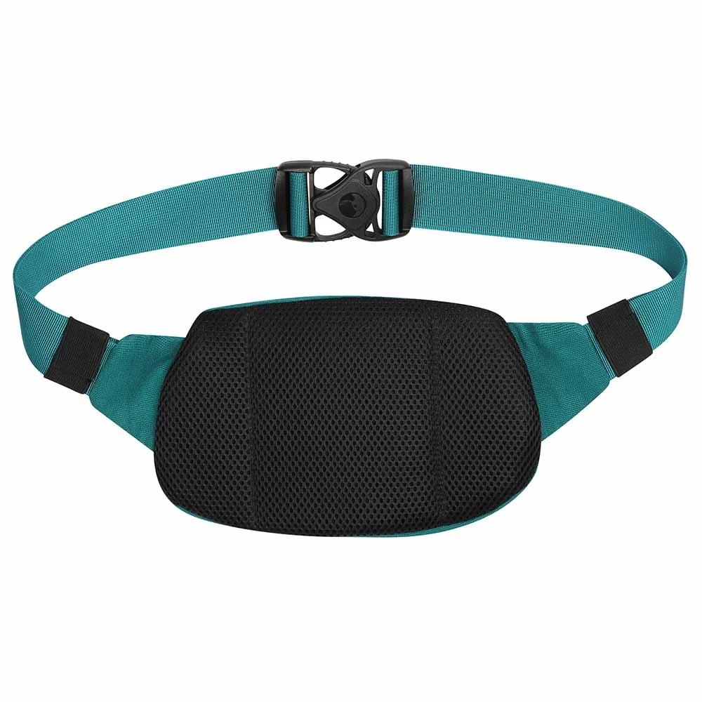 Belt bag with adjustable straps and side release buckle, two compartment design with zip closure, padded back panel.