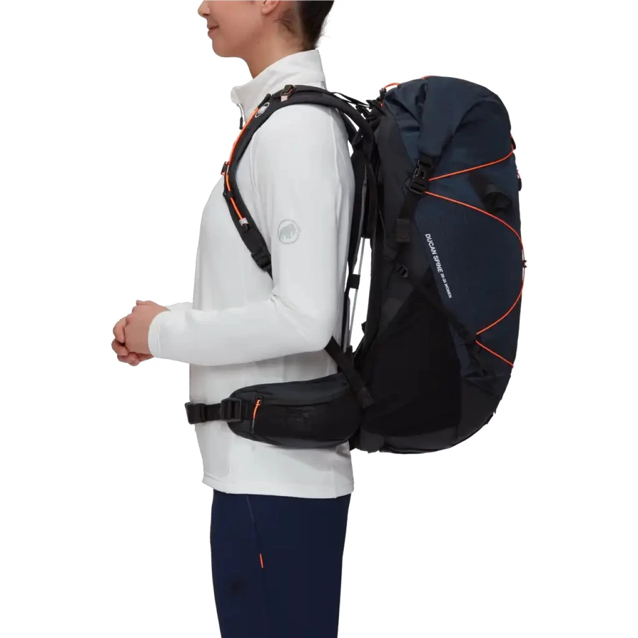 Mammut’s Ducan Spine 28-35 is a lightweight, women’s-fit backpack featuring Active Spine Technologyâ„¢. Enjoy reduced fatigue through even weight distribution and greater comfort thanks to the air space suspension system for effective back ventilation. Shoulder straps, carrying system, hip belt and back dimensions are tailored to the female anatomy. Easy-access pockets are convenient on the go and variable packing volumes allow for greater flexibility.