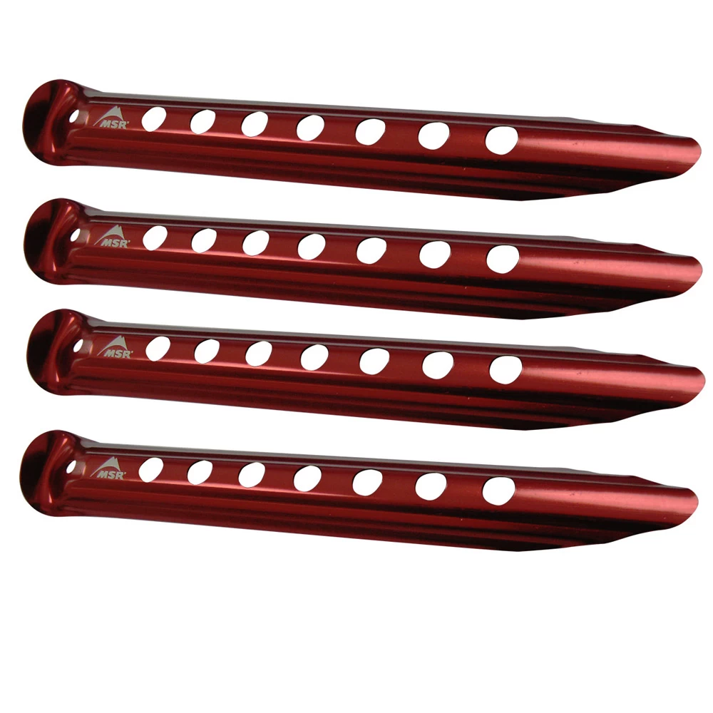 The broad profile of this tent stake is ideal for holding well in sand or snow. Constructed of lightweight 7000-series aluminum, the MSR Blizzard tent stake offers strength and holding power in conditions that can cause other stakes to fail. The stake can also be used as a deadman anchor. Package of 4.