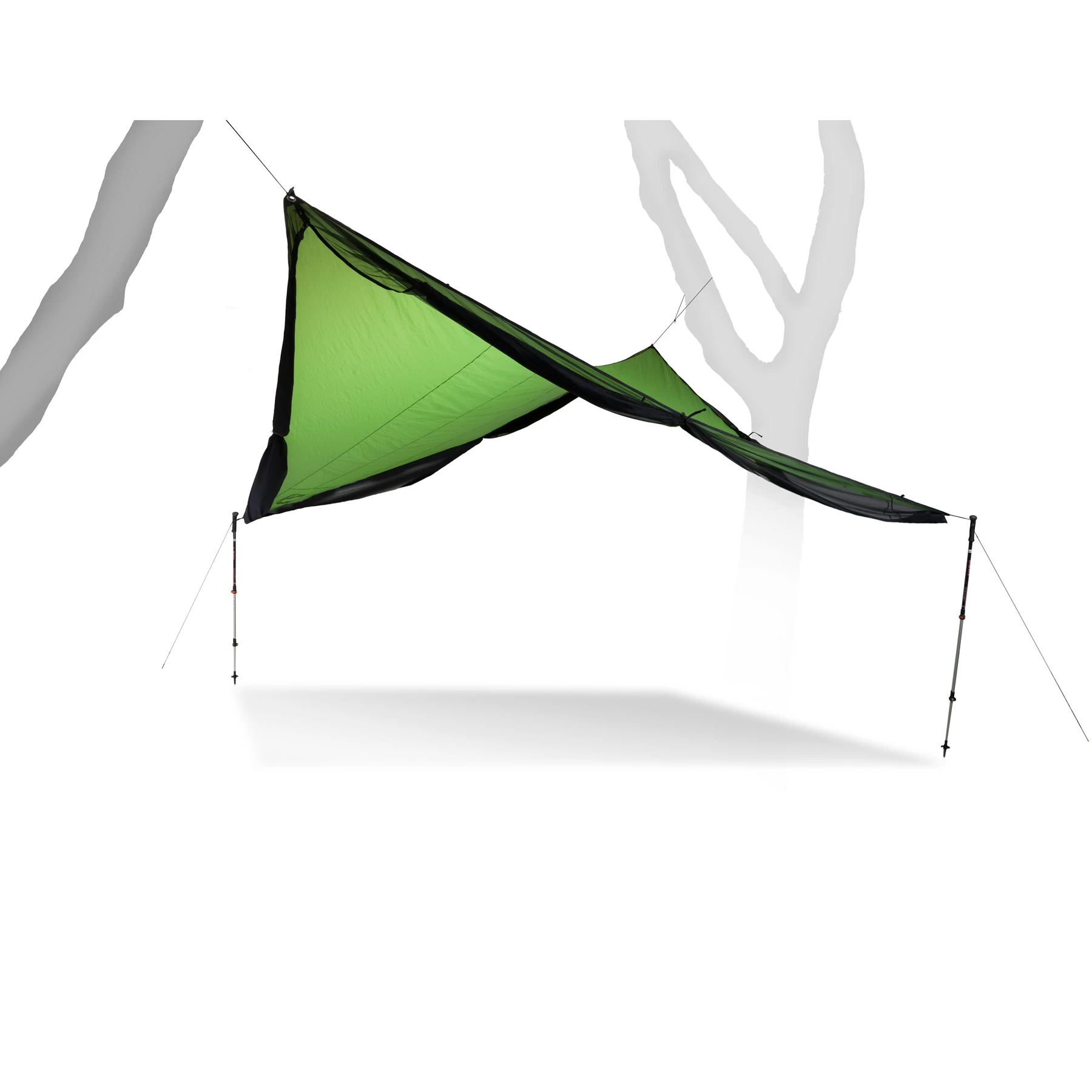 • Attach corners with cord to trekking poles, paddles, or nearby trees