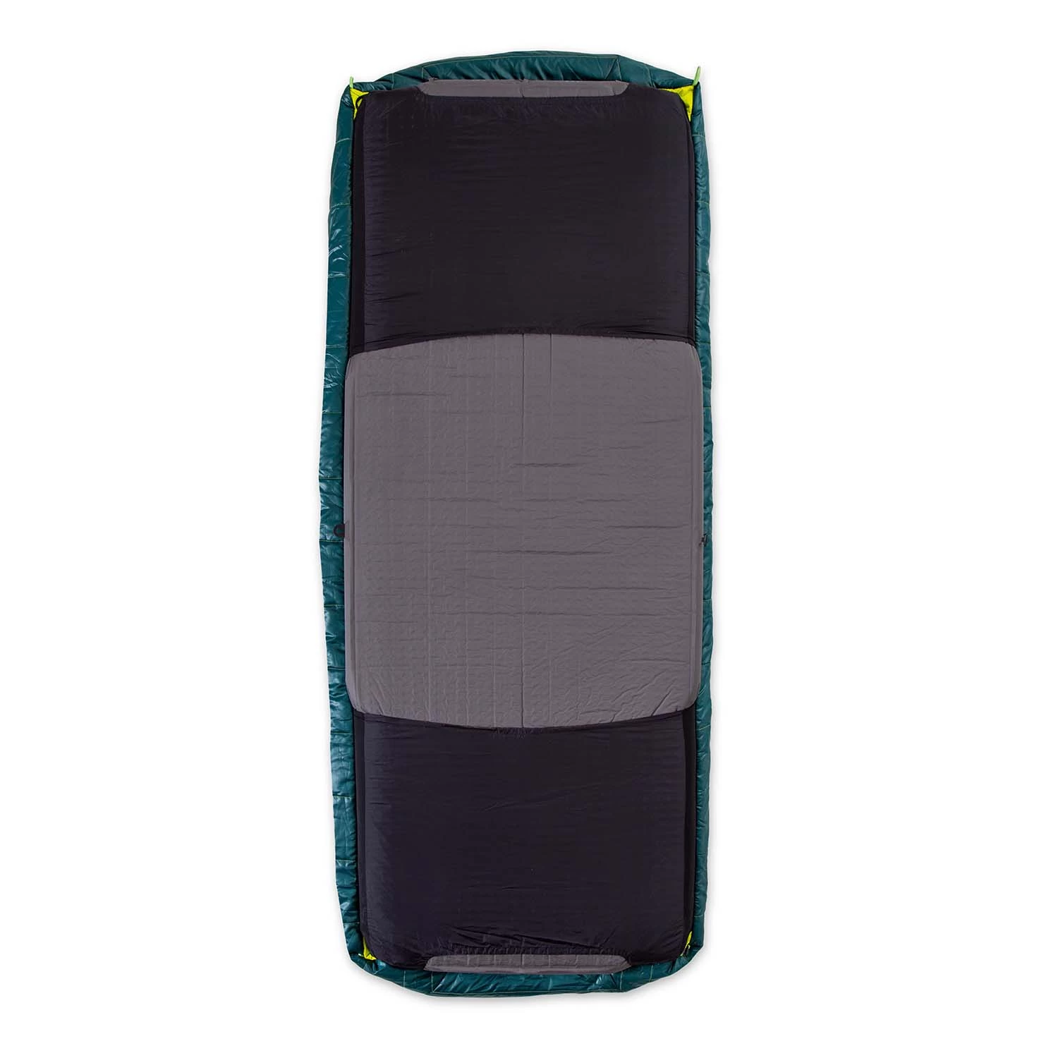 The overall design is symmetrical, with zippers on both sides for easily zipping bags together, and a tapered geometry at the head and foot ends to reduce excess volume and keep the interior toasty. Our unique Blanket Fold™ is good for snuggling in and regulating body temperature and a pillow pocket keeps your pillow from misbehaving. Jazz™ makes a perfect pairing with our ultra-comfy Roamer™ sleeping pad. Best of all, when it’s time to pack up, keep your deflated sleeping pad in place and roll them up together in Jazz’s oversized duffle for grab-and-go convenience. If you’re looking for the comforts of home for a night under the stars, Jazz™ hits the perfect note.