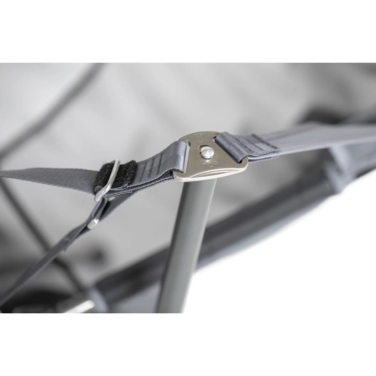 • The aircraft grade aluminum suspension frame is sturdier than most camp chairs, yet still packs down quickly and compactly.