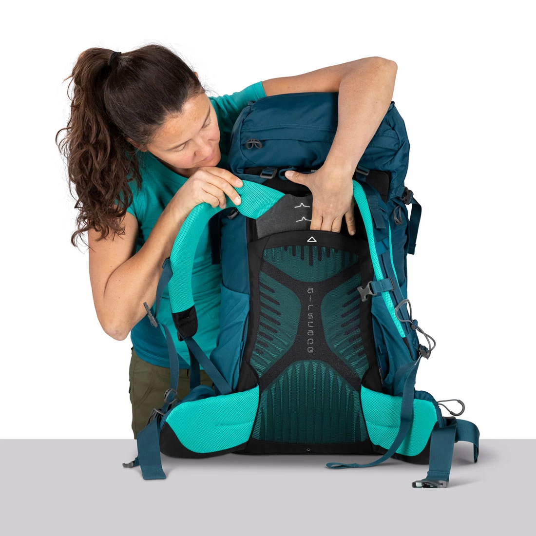The AirScape backpanel offers adjustable torso lengths, while the spacermesh harness and hipbelt comfortably carry heavy loads, and a slim profile doesn’t get in the way of the task at hand.