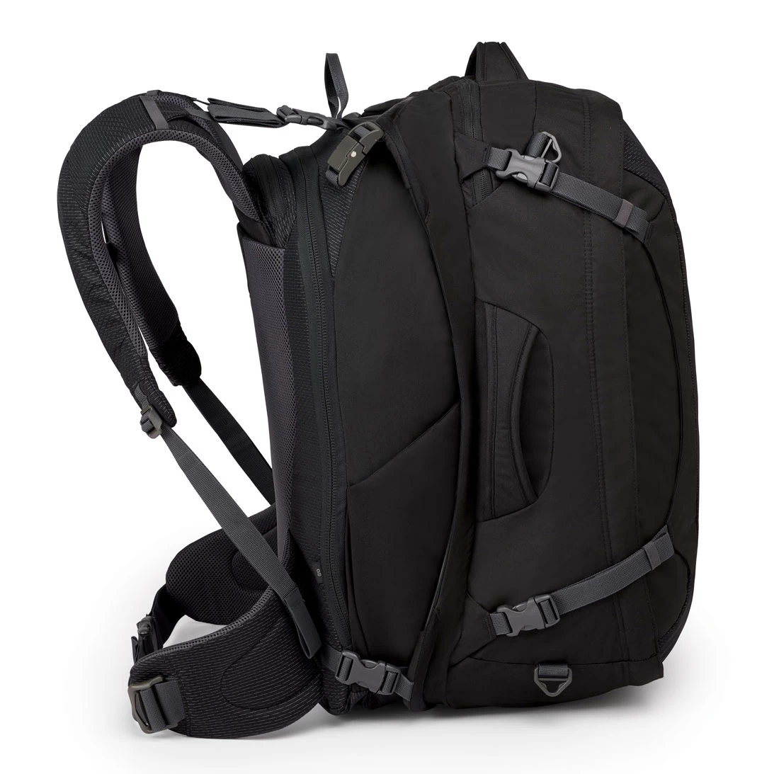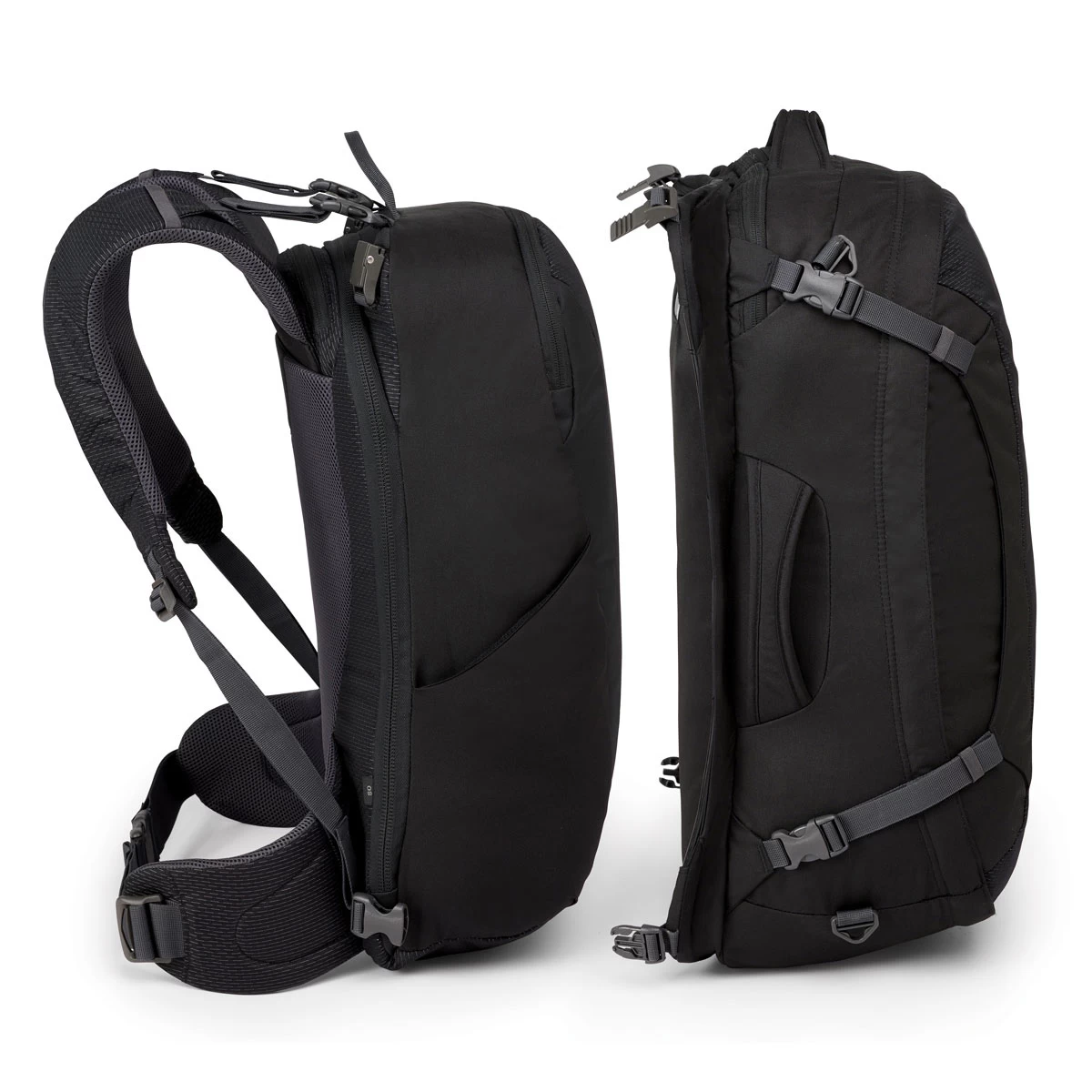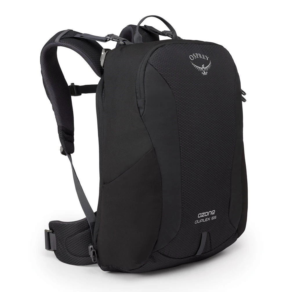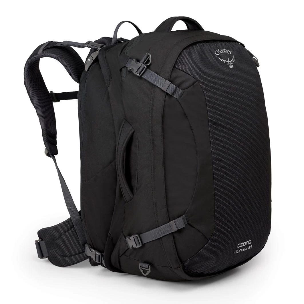 The Ozone Duplex 65 Men’s Travel Pack offers a new twist on modular travel bags for savvy travelers. The Daypack features a robust, capable and comfortable harness and the Cargo Bag secures to the back. The Daypack is where you keep your more valuable items; laptops and tablets slide into the padded sleeve, organizer pockets keep things where they belong and a hidden zippered pocket behind the harness secures your passport, tickets, wallet and other critical items. Lighter items that you only need when you reach your destination store in the Cargo Bag, which includes padded grab handles, an external liquids pocket to speed your trip through security, and a huge U-zip opening to make packing a breeze.