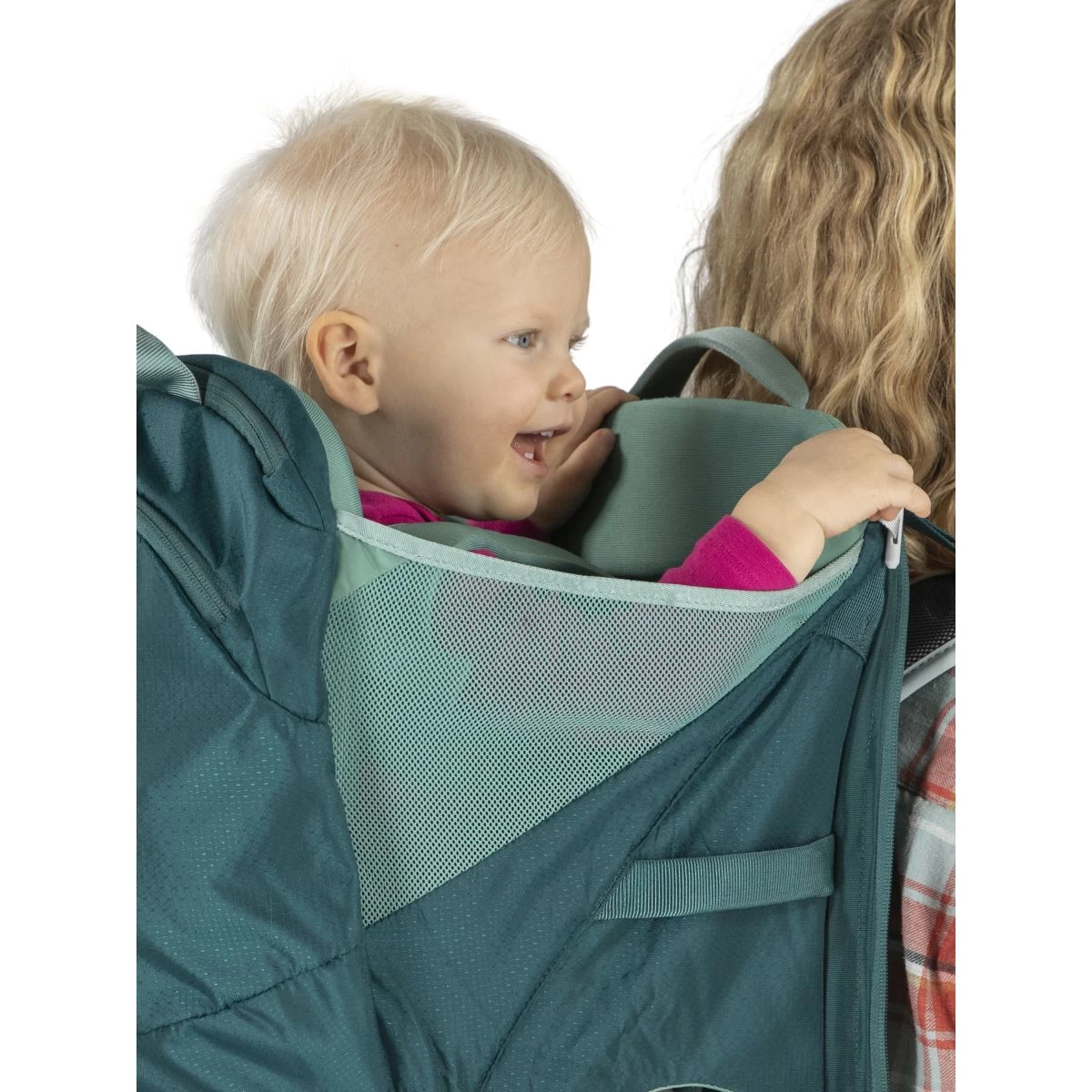 Share everyday adventures with the Osprey Poco LT. Small and safe, this lightweight child carrier is ideal for tight stores, busy sidewalks and shorter hikes. Its patent-pending frame folds flat to store small and out of the way. Featuring ventilated AirScape® suspension, adjustability to fit a variety of body shapes and a built-in UPF 50 sunshade. TUV-certified and made sustainably with bluesign®-approved materials and PFC-free DWR.