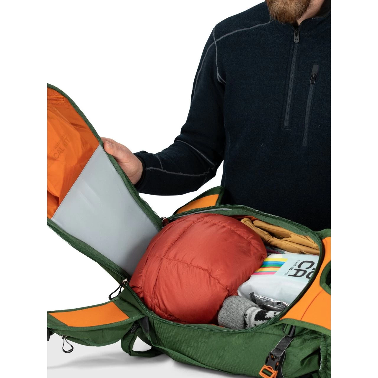Big days in the backcountry require planning, plenty of gear, and quick access to avalanche safety essentials. The Soelden 42 is Osprey’s largest technical backcountry ski pack designed with hut tours in mind.
