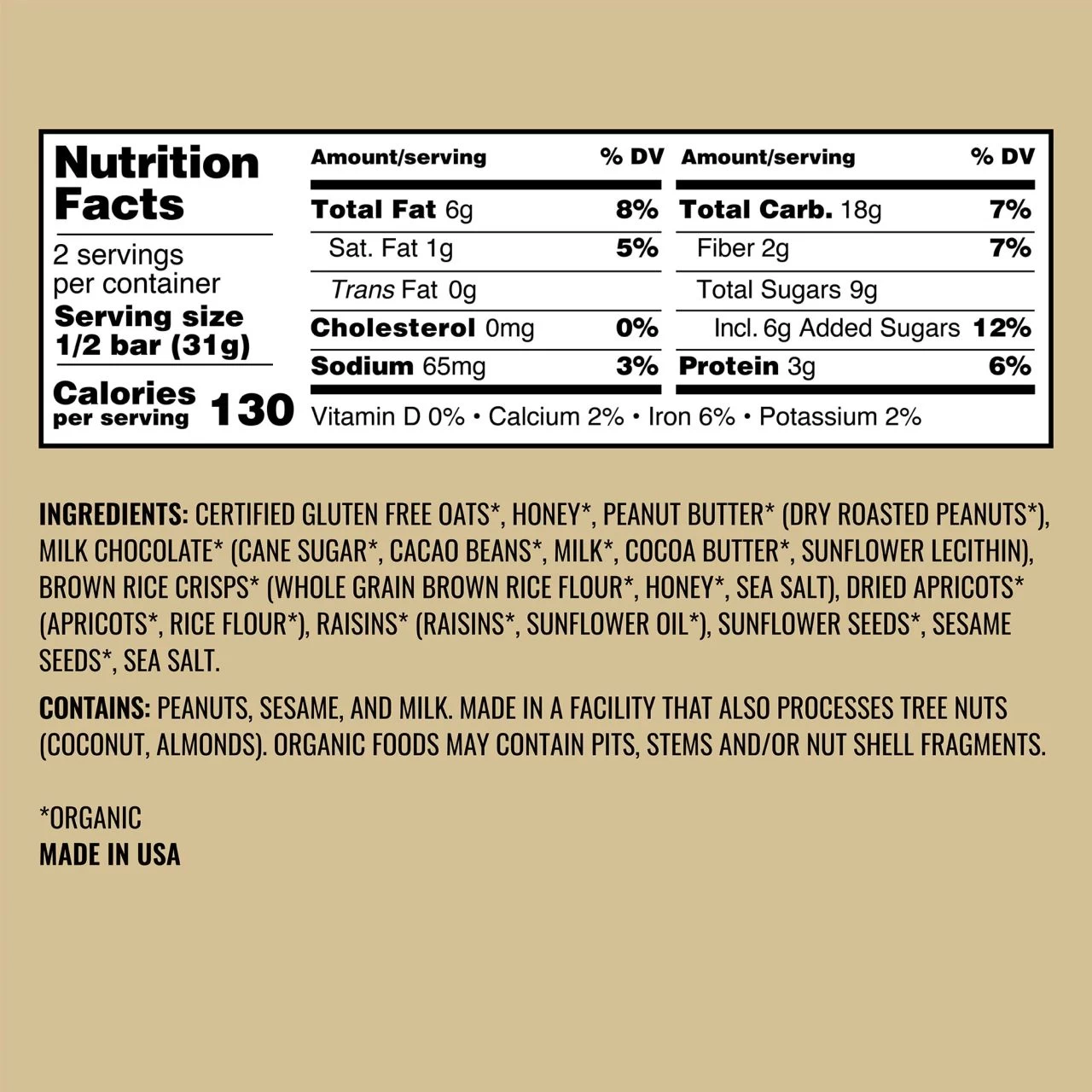 These Peanut Butter Milk Chocolate Bars pack in 3 grams of protein per serving to help fuel your outdoor adventures or busy day. All of Kate’s Real Food products are made with certified gluten-free oats, making them a good choice for those with gluten allergies or intolerances.