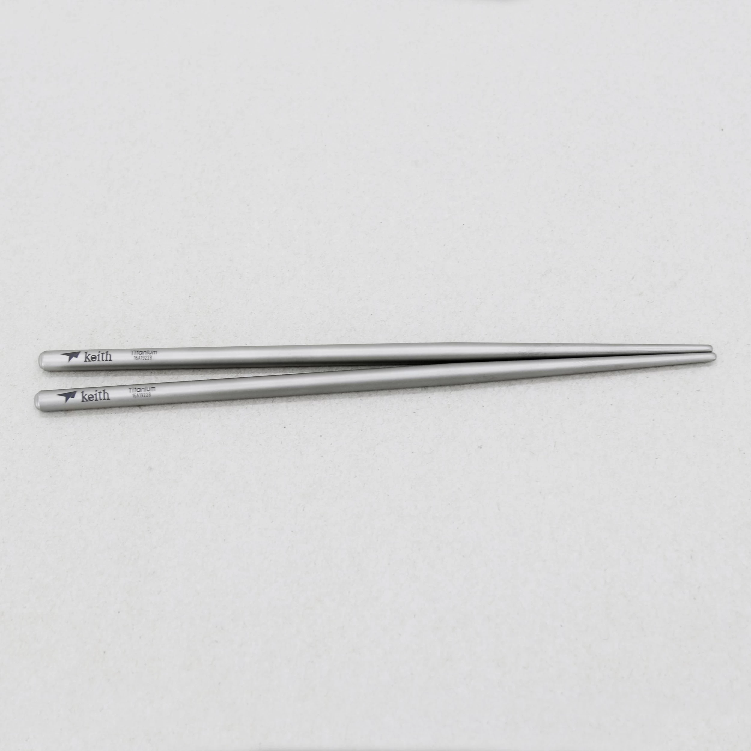 The Round Titanium Chopsticks from Keith is a pure titanium utensil set in two thickness options for camping and traveling eating.