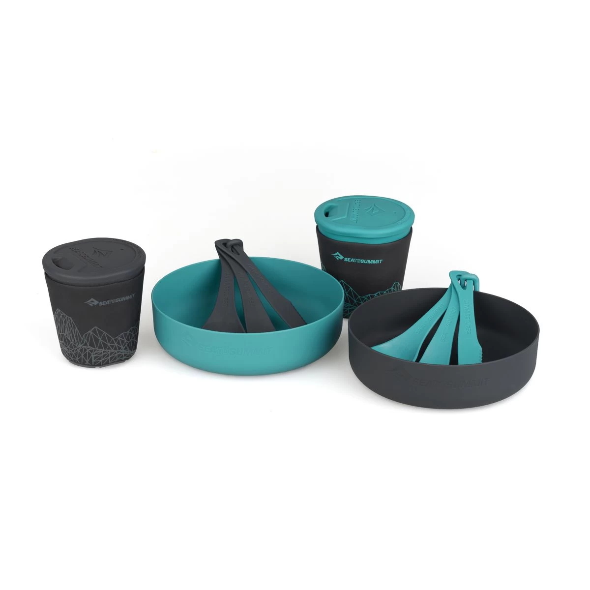A lightweight and compact dinnerware set for two that nests inside the Sea to Summit Alpha and Sigma 2.7L pots. The entire set nests and stows inside a lightweight storage pouch. The Camp Set 2.2 includes one of each color of the Delta Light Bowls, Insul Mugs and Delta Cutlery Sets.
