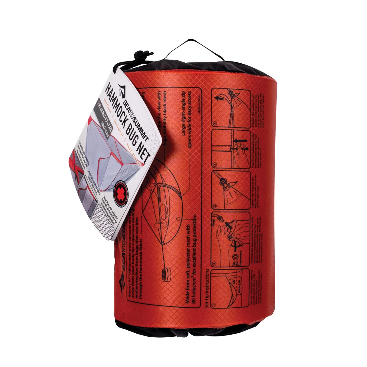 This unique bug net design, with a collapsible spreader pole, offers superb protection and a spacious interior. With no ridge line your star gazing is unimpeded and most importantly, this bug protection guarantees you don’t make any unwanted friends during the night. Made from breathable, high visibility black polyester mesh with 500/sq in (80 holes/cm²) for excellent protection from insects. It’s easy to setup and easy to get out of with its wide zippered opening. Designed to work with all Sea to Summit hammocks and most existing hammocks.
