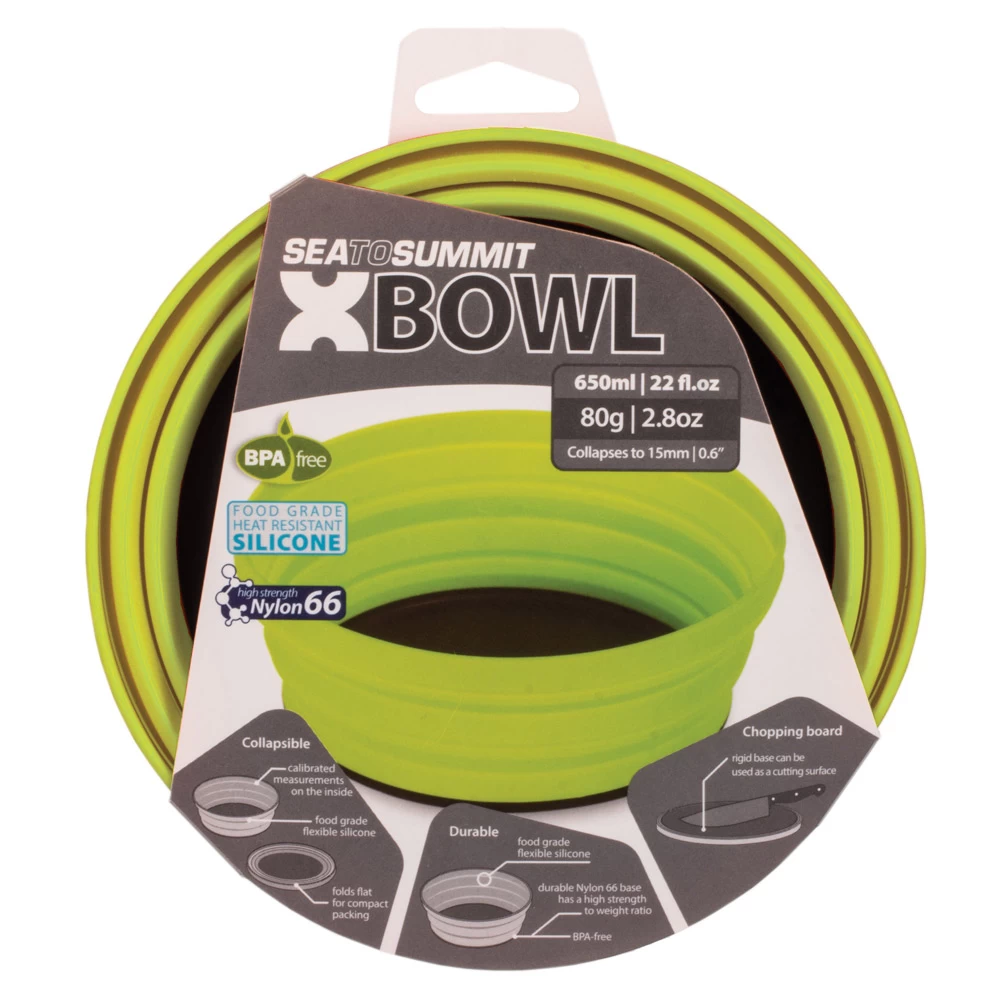 The Sea to Summit X-Bowl is made from flexible, food grade silicone that collapses easily to slide into any pack with ease. The nylon base may be used as a cutting board when the X-Bowl is flipped upside down, making it a multi-purpose and functional piece of dinnerware. In addition, X-Seriesâ„¢ dinnerware nests neatly with the X-Pots to create a comprehensive space saving kit.