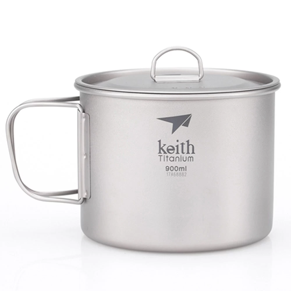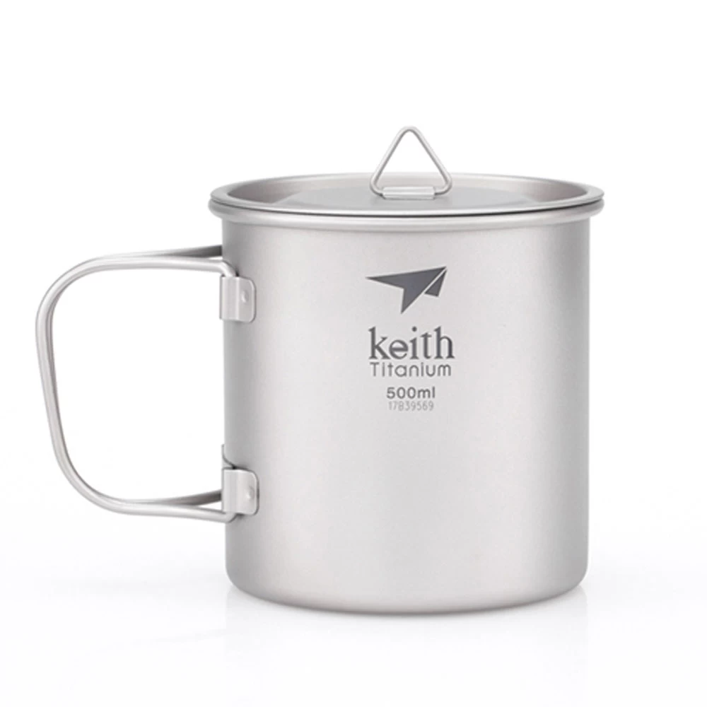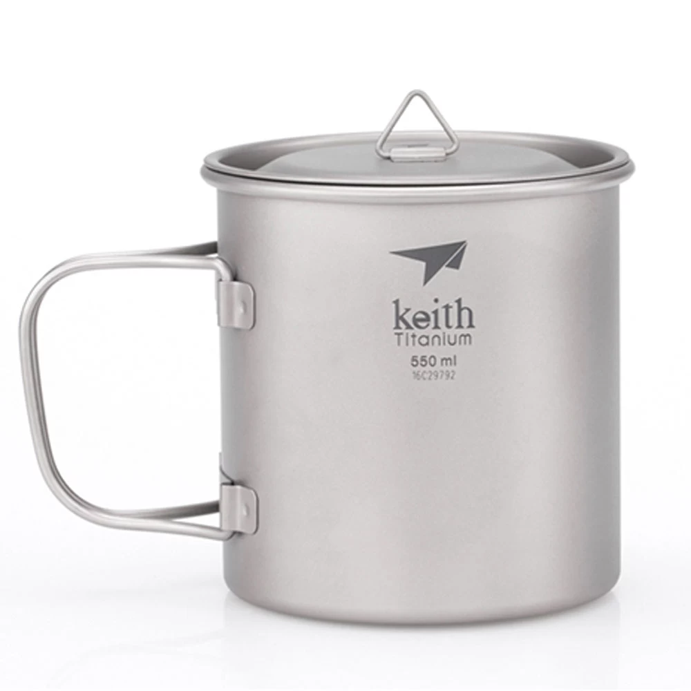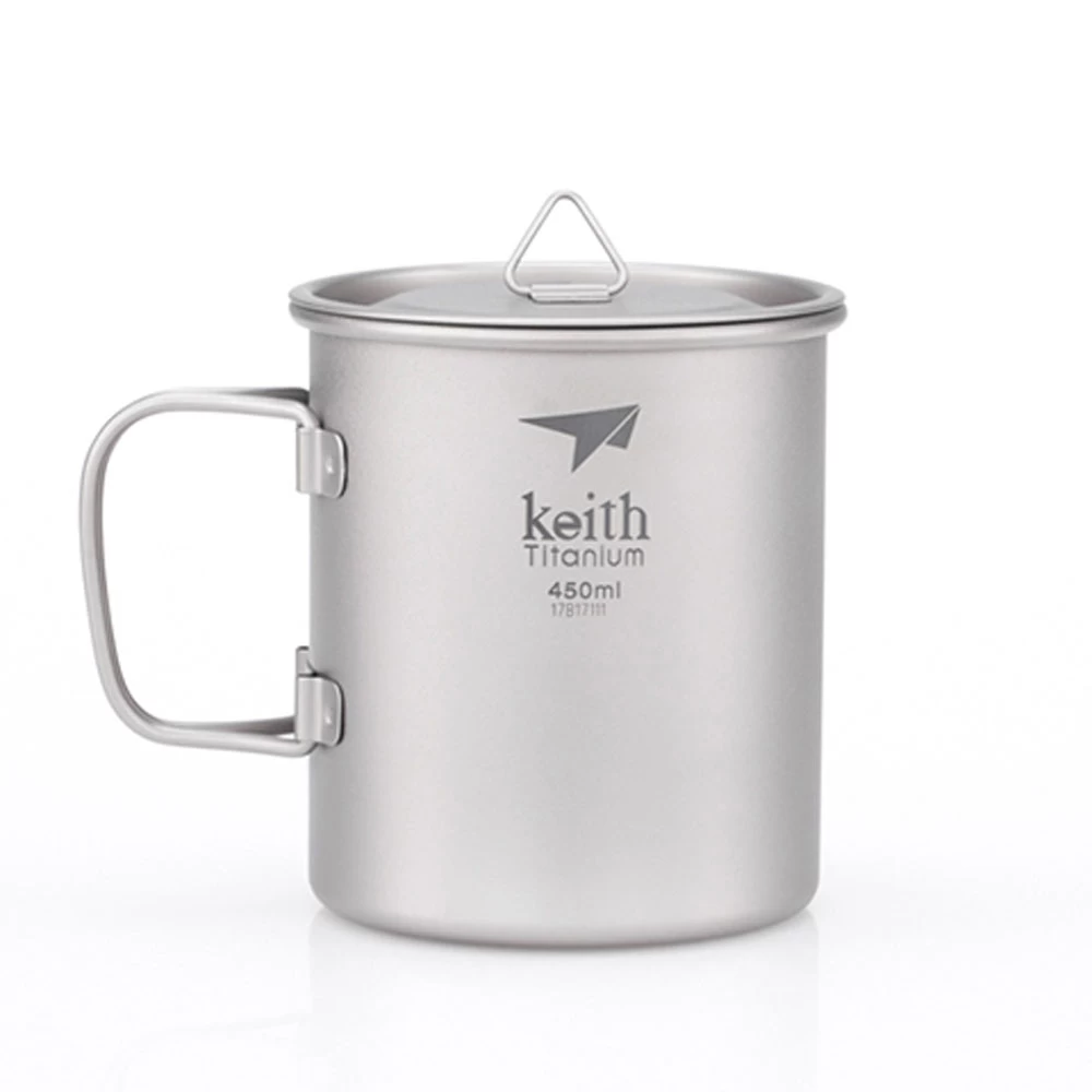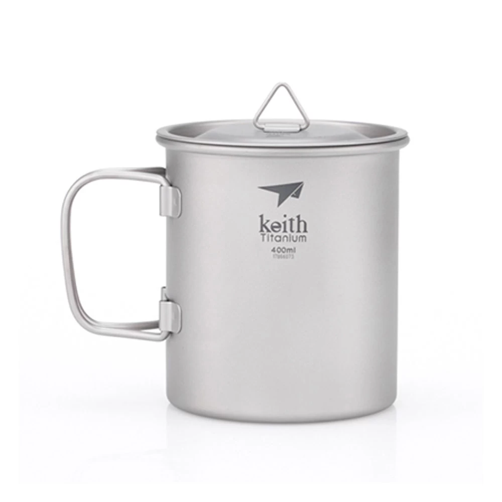 The Single-Wall Titanium Mug with Folding Handle and Lid from Keith is a minimalist’s dream with its durable ultralightweight titanium construction.
