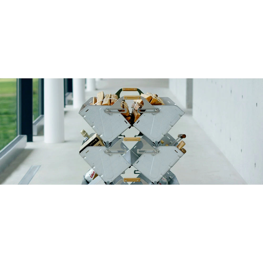 The Stacking Shelf Container 25 from Snow Peak is a rugged steel container for indoor or outdoor use, with 25 liters of carrying space and a unique stacking capability. Use it for stacking firewood, kitchen supplies, magazines, or anything else you need around your home, dorm, or campsite. The container folds open to increase carrying capacity for bulky items, and stacks when open or closed.
