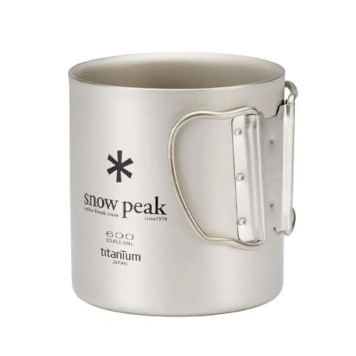 The gold standard of camping mugs, this double-walled, insulated 600 mL titanium mug will keep your coffee or tea warm and is built to withstand any adventure without adding ounces to your pack. Folding handles make the mug easily packable. (Double wall cups are great at keeping the inside temperature more constant, but should NEVER be used for cooking.)