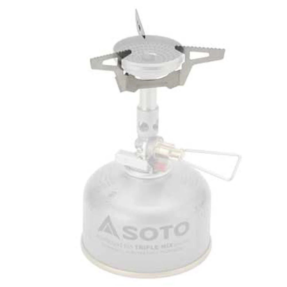 Three-prong pot support provides stability. User-friendly for one person. Compatible with the Soto WindMaster stove (sold separately).