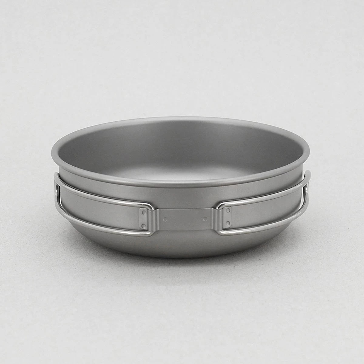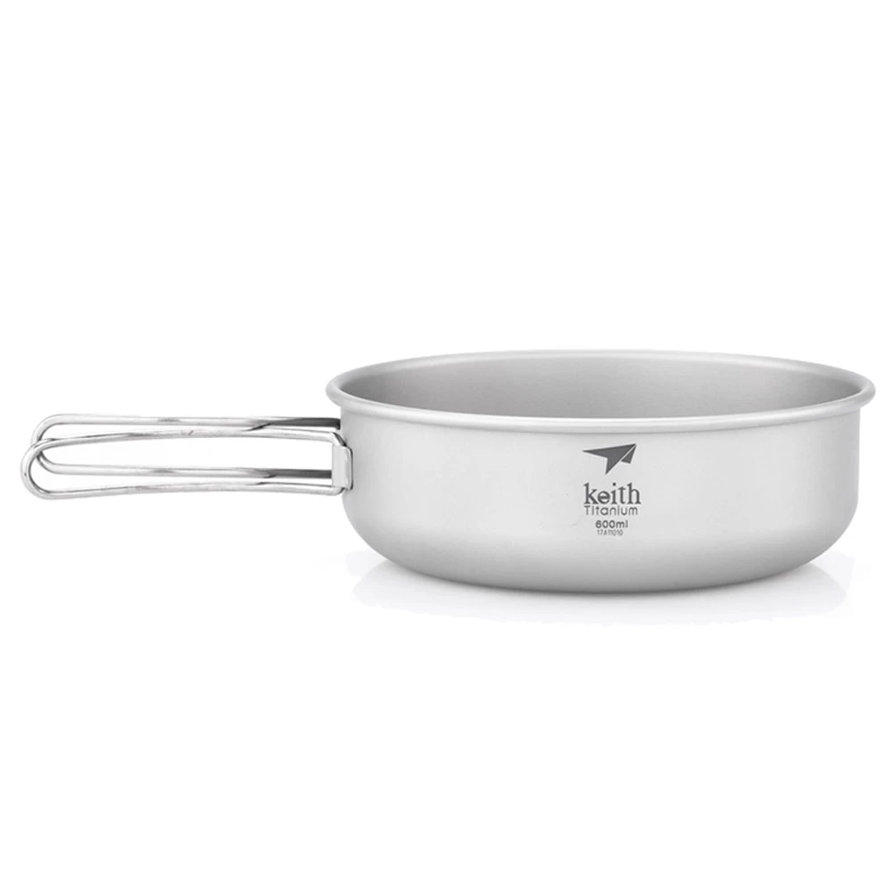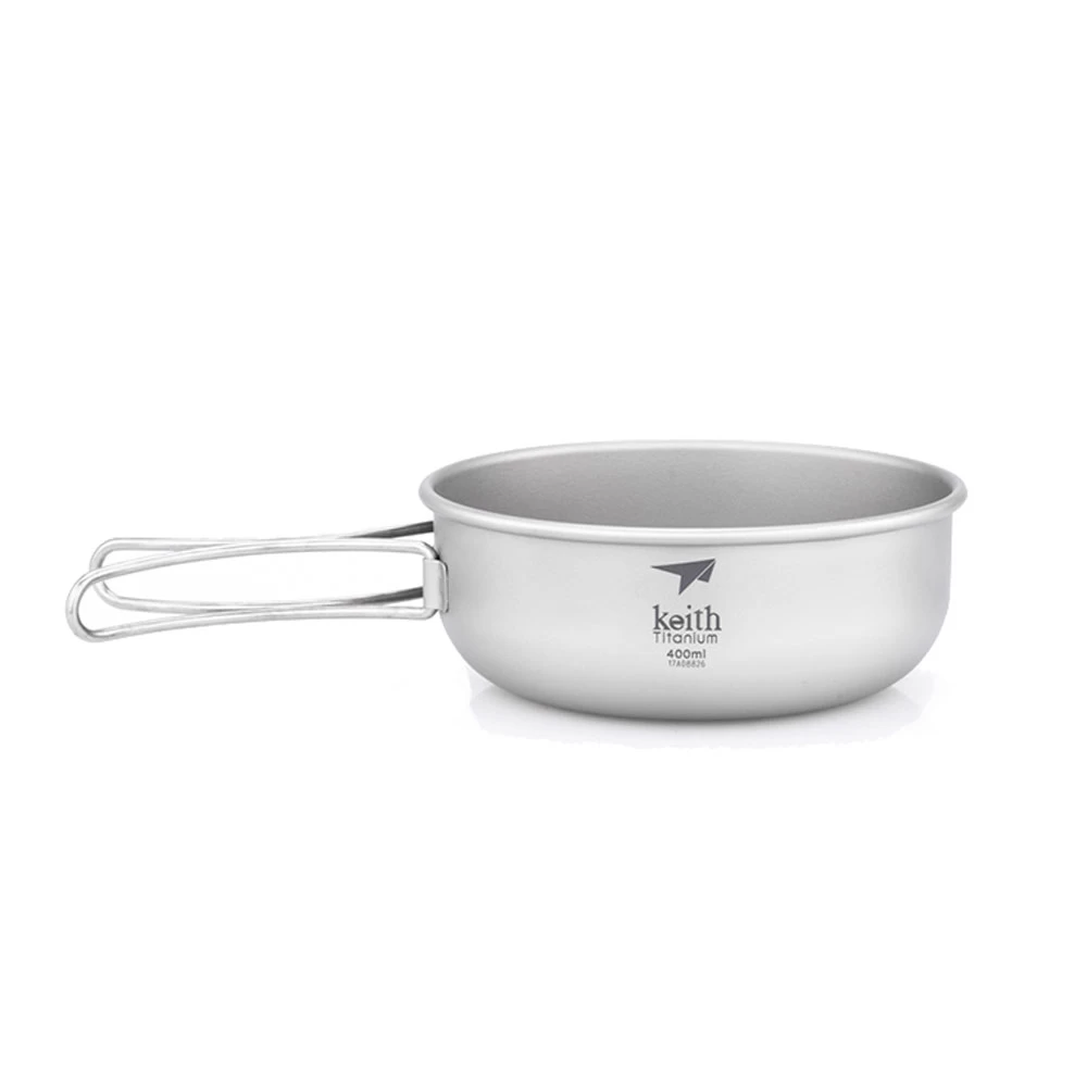 The Titanium Bowl with Folding Handle from Keith is a lightweight bowl for camp cooking and eating for ounce counters and minimalists.