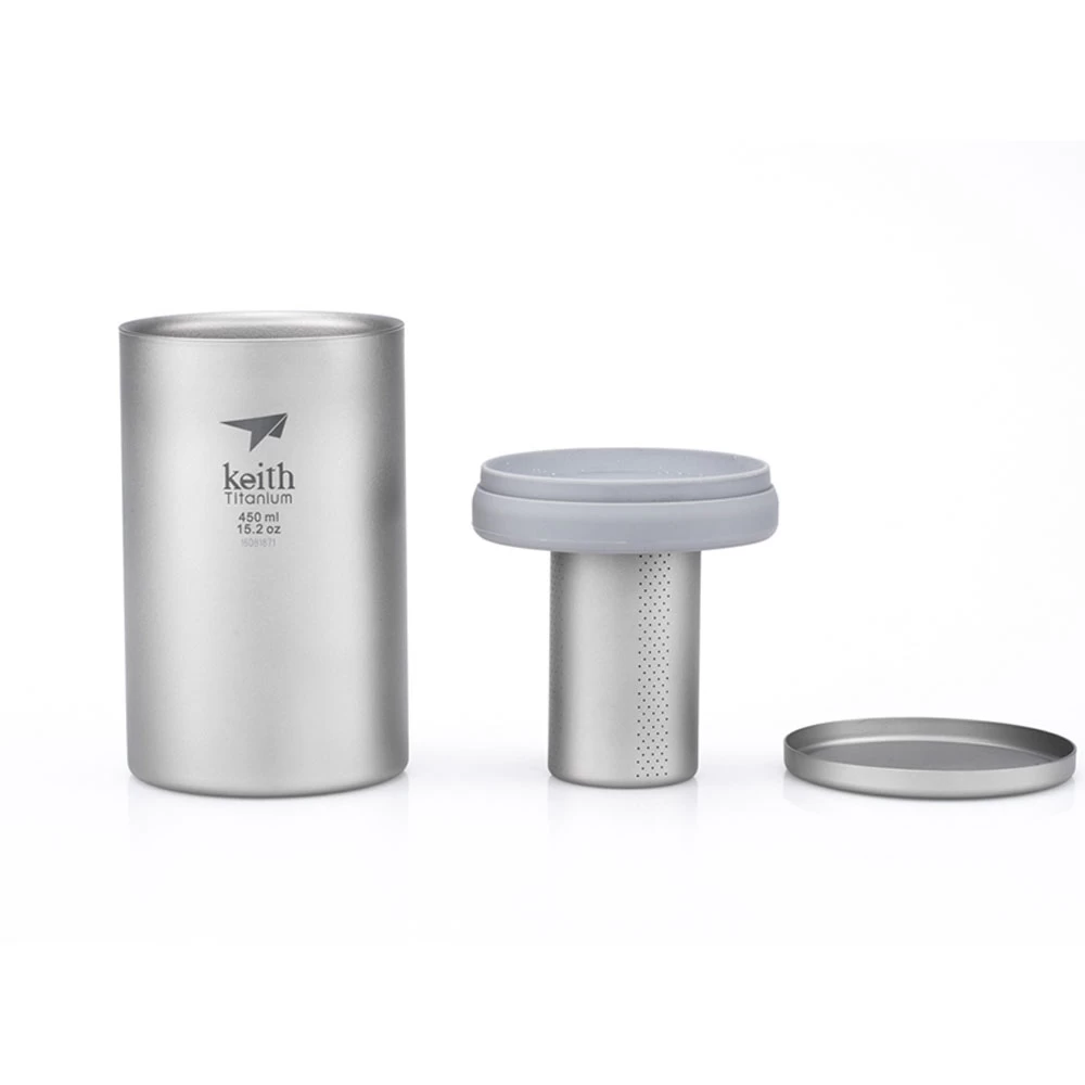Keith Titanium’s 15.2 fl oz double-wall Office mug and tea infuser are made of premium pure titanium grade 1 without lining or coatings to let you enjoy your favorite tea at its truest! The Office Mug with Tea Infuser has two lids, one made of pure titanium and one made of food grade silicone. Titanium is ultralight and super-strong; it is eco-friendly, biocompatible and bacteria inhibitive; it is also extraordinarily hypoallergenic and exceptionally corrosion-resistant.